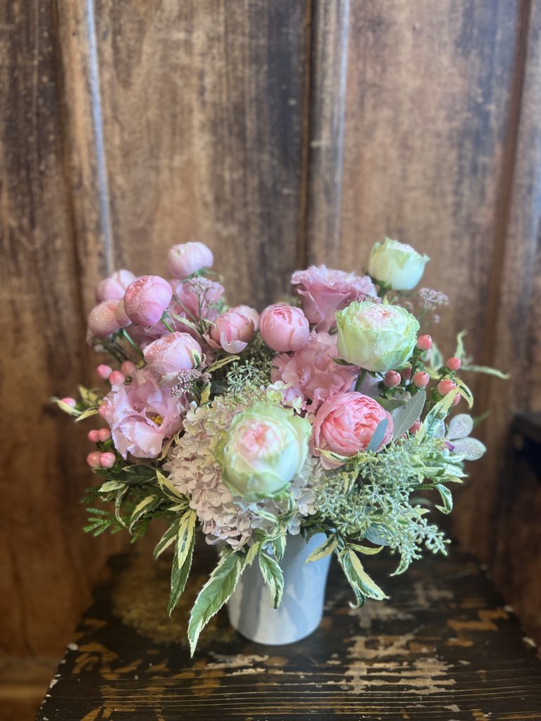 バラ・ヴァーミリオンとラナンキュラス ・シャルロットをメインに制作。