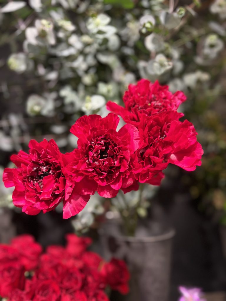 濃い色のピンク系のラナンキュラス は華やかさが光ります。